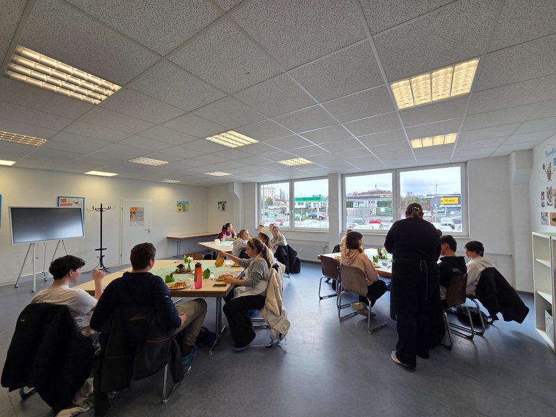 Die Klasse 5b und ihre Klassenlehrerin Sara Nalbach (u.a. Lehrerin für Hauswirtschaft und Soziales) werden sich mit dem Thema „Nachhaltigere Ernährung“ beschäftigen. Dabei geht um saisonale, regionale und ökologisch angebaute Lebensmittel, die Vermeidung von Lebensmittelverschwendung und die Förderung des Tierwohls. Außerdem werden vegetarische und frisch gekochte Gerichte in den Fokus gerückt sowie die Themen „Fairer Handel“ und „Umweltfreundliche Verpackungen“ behandelt.